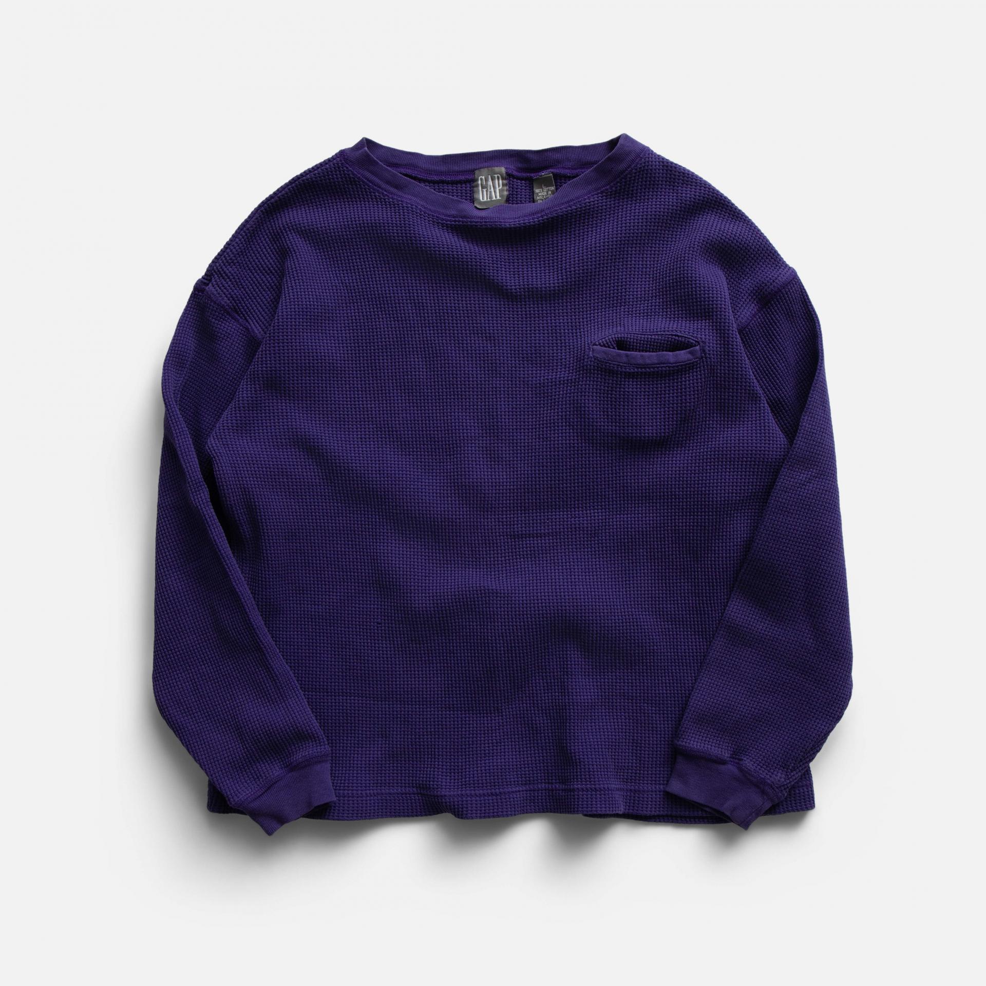 (L) OLD GAP WAFFLE PURPLE POCKET LONG SLEEVE SHIRT
