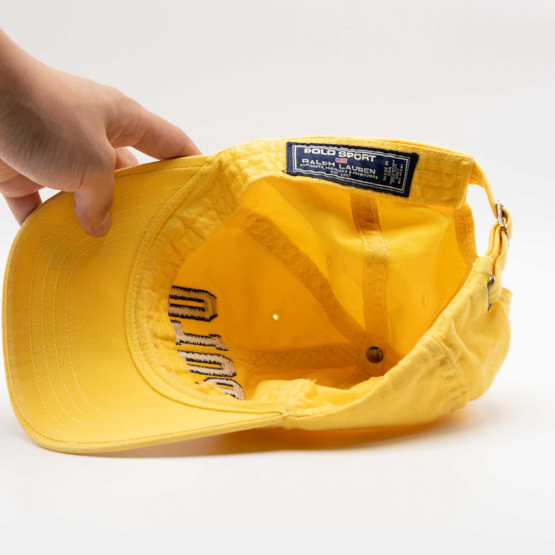 [RARE] VINTAGE POLO RALPH LAUREN WHITE LOGO YELLOW HAT [USA MADE]