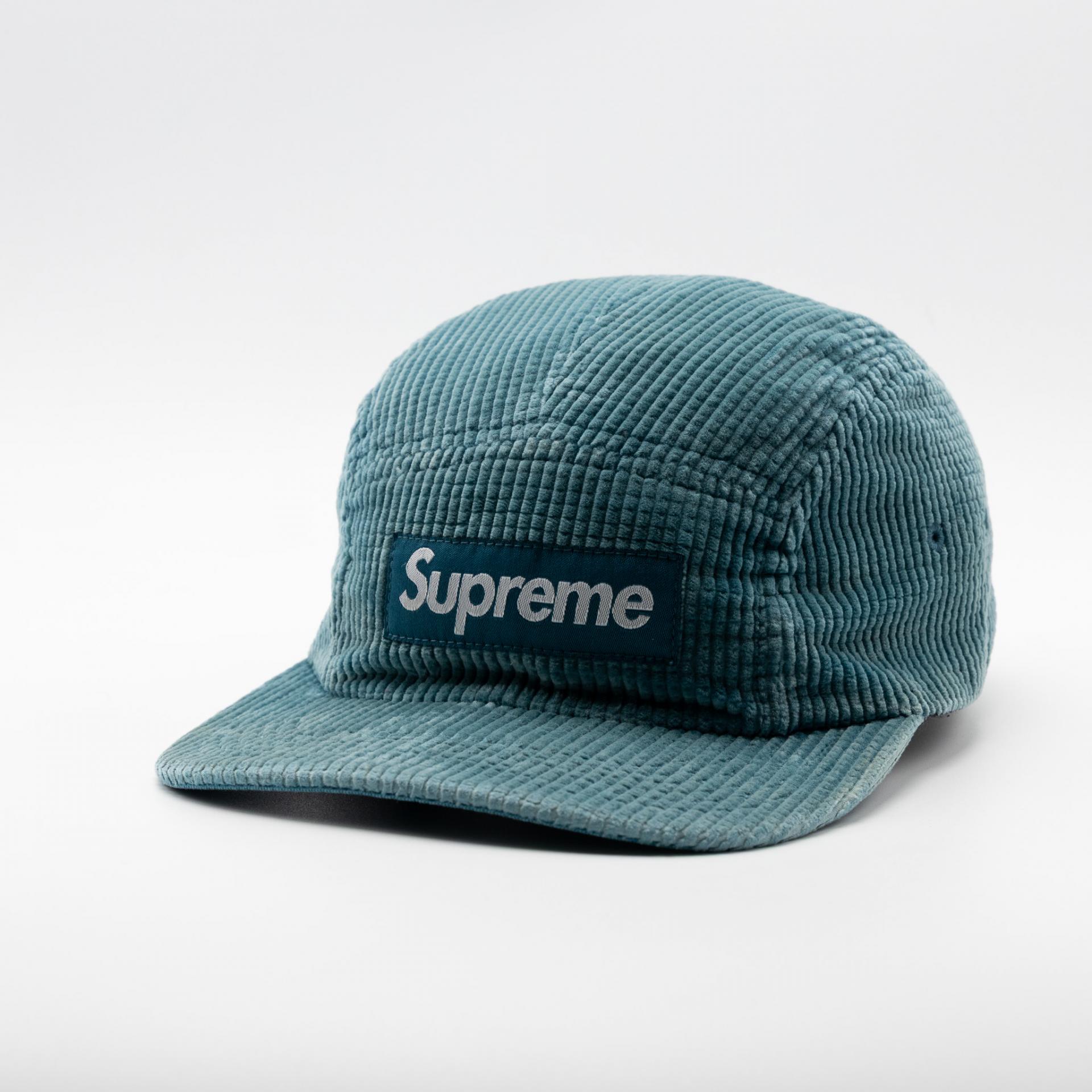 SUPREME WAFFLE CORDUROY CAMP CAP TEAL 17FW