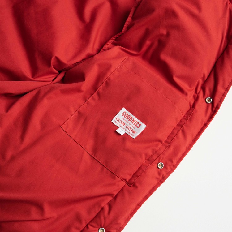 1970~80년대 시에라디자인, 노스페이스, 클래스5 등의 빈티지 다운 베스트 감성 빈티지 다운 베스트 소재를 분석해서 매트한 소재와 컬러감 (겉감 cotton 65% nylon 35%) 을 구현, 착용하면서 세월에 따른 워싱이 진행되는 원단을 사용하여 한층 깊이 있는 무드를 연출합니다.