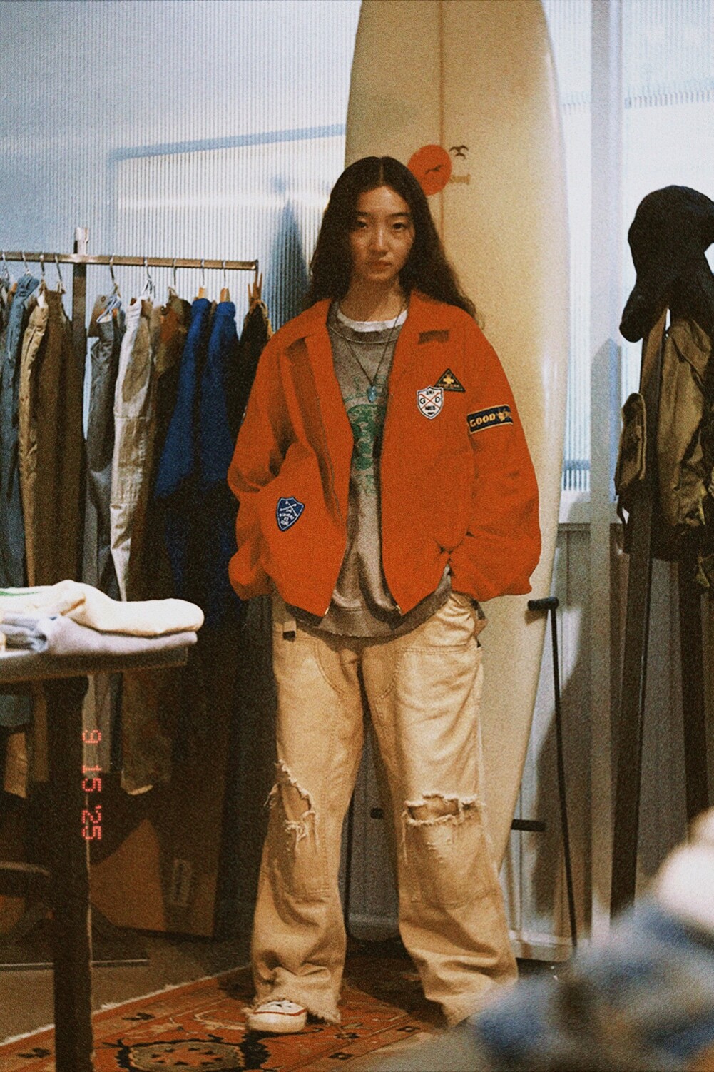 워크웨어의 상징인 더블니 디테일에 뜨거운 태양빛에 바랜 듯한