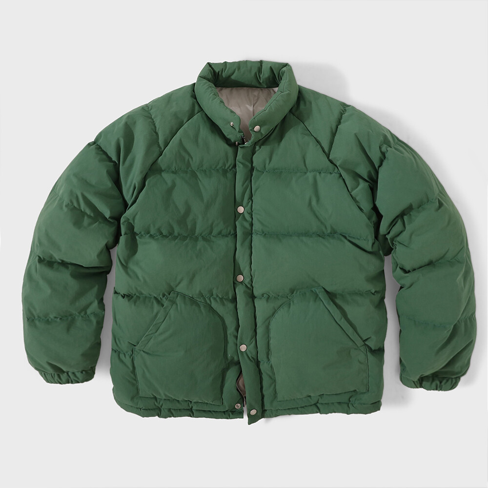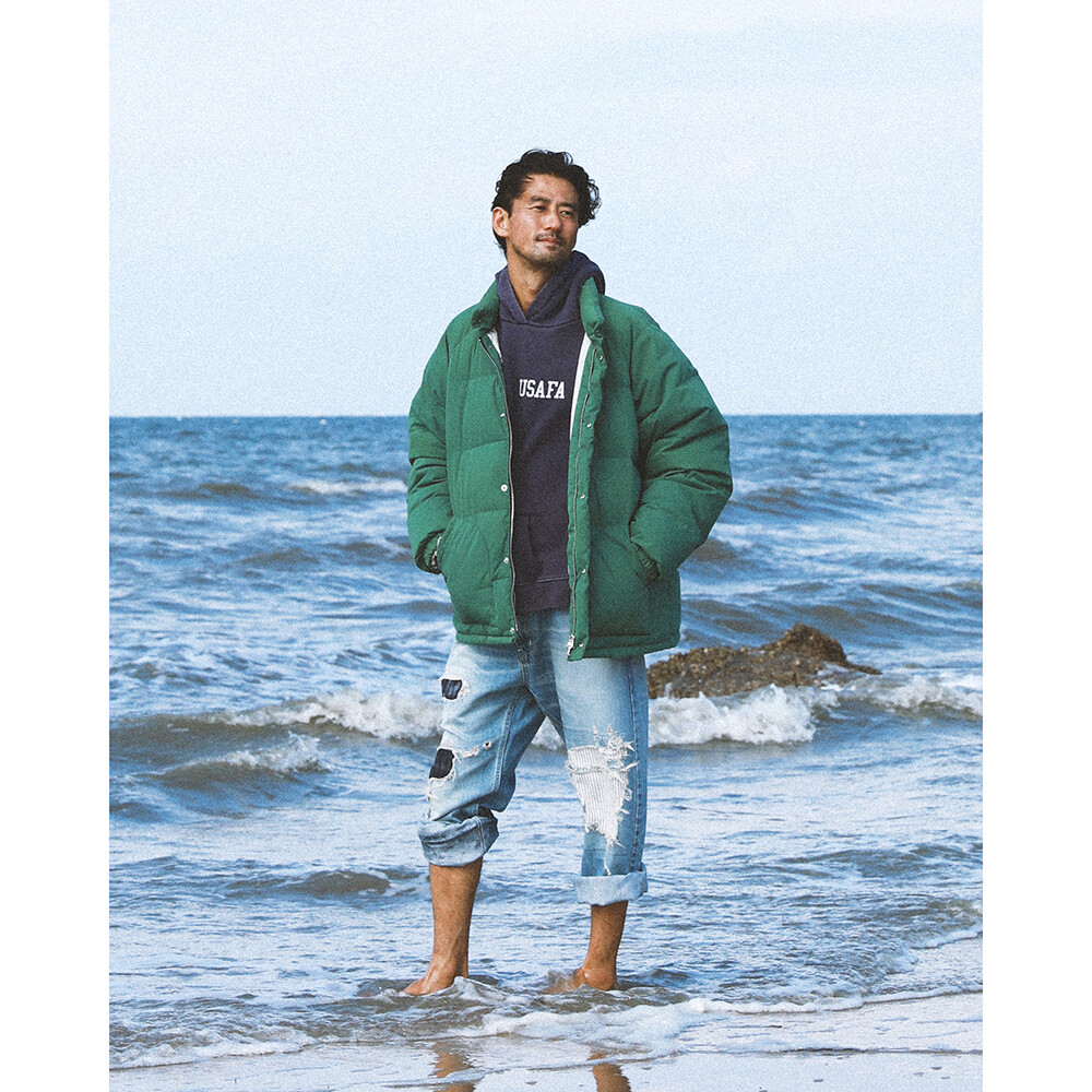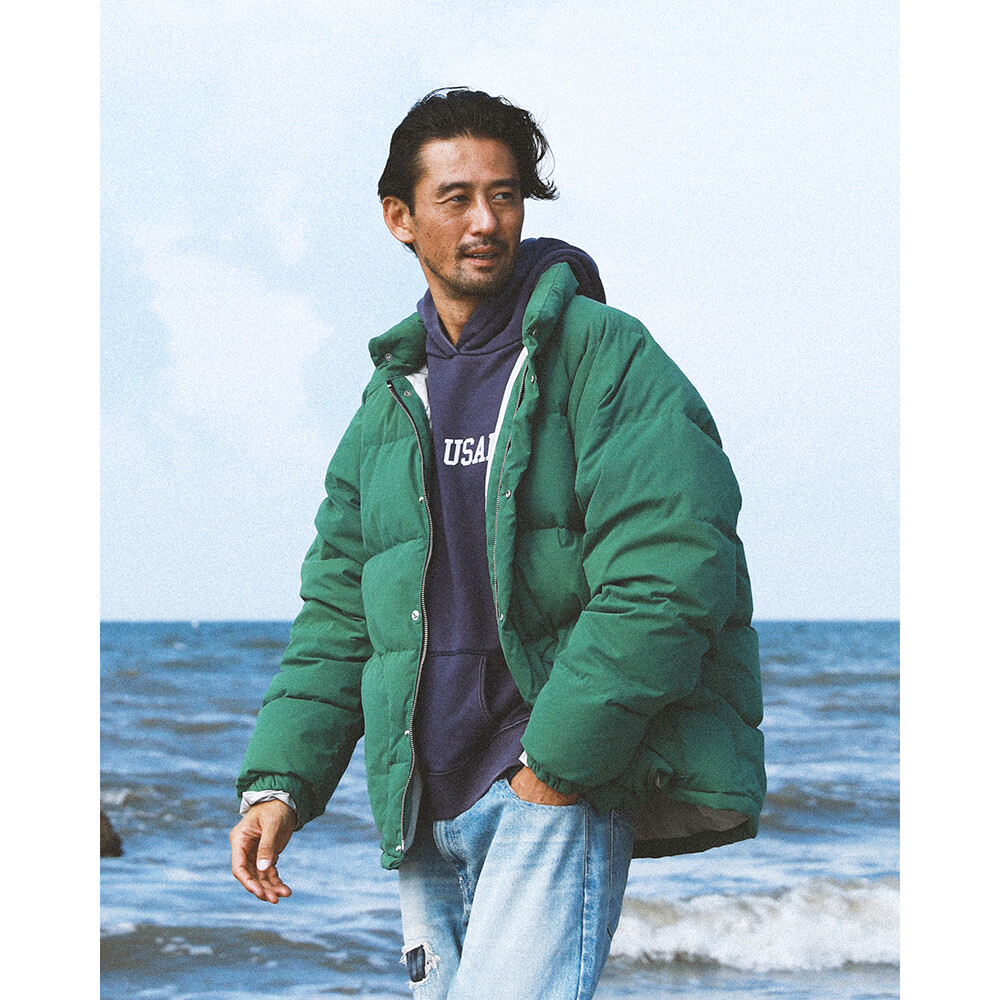 빈티지 다운파카 소재를 분석해서 매트한 소재와 컬러감 (겉감 cotton 65% nylon 35%) 을 구현, 착용하면서 세월에 따른 워싱이 진행되는 원단을 사용하여 한층 깊이 있는 무드를 연출합니다.
