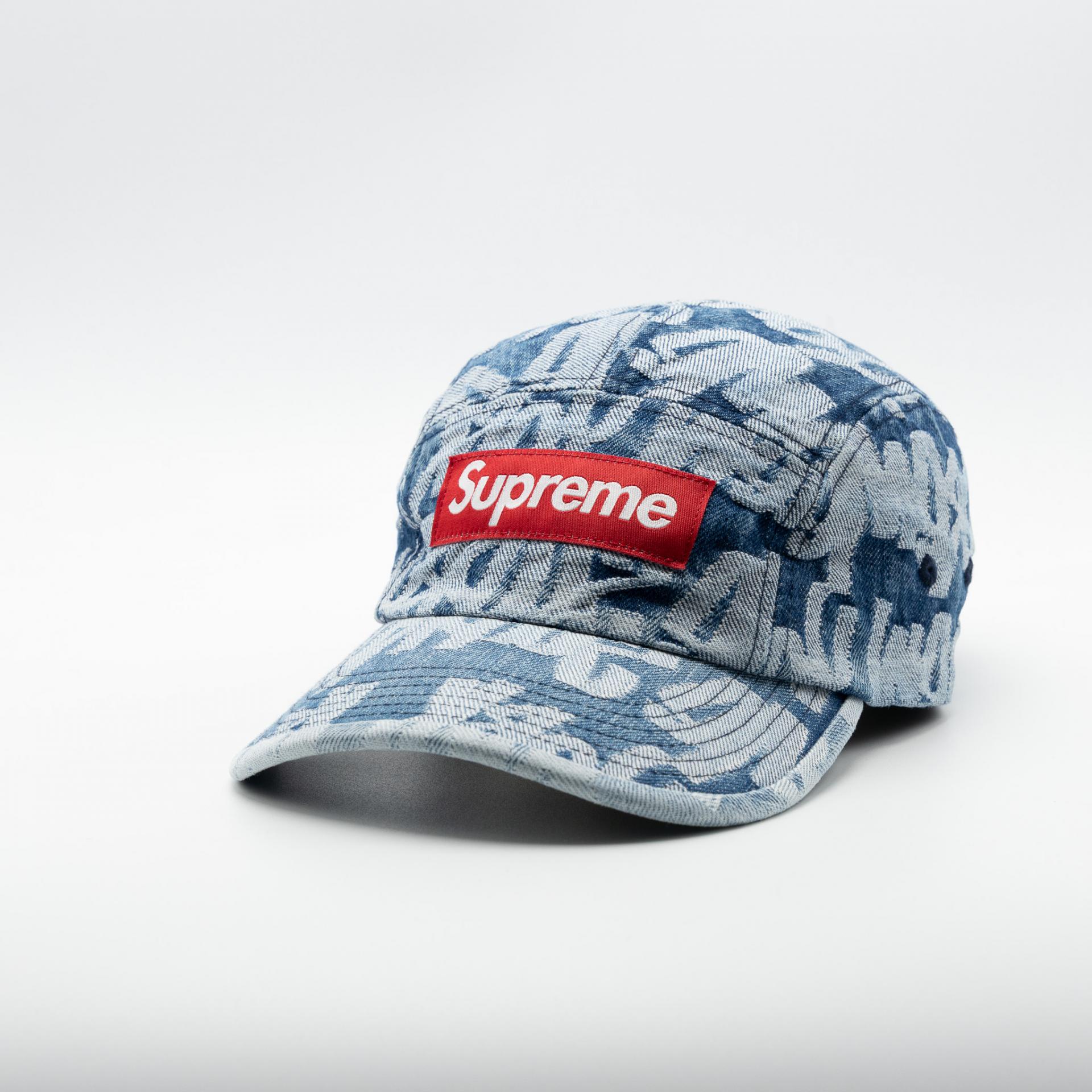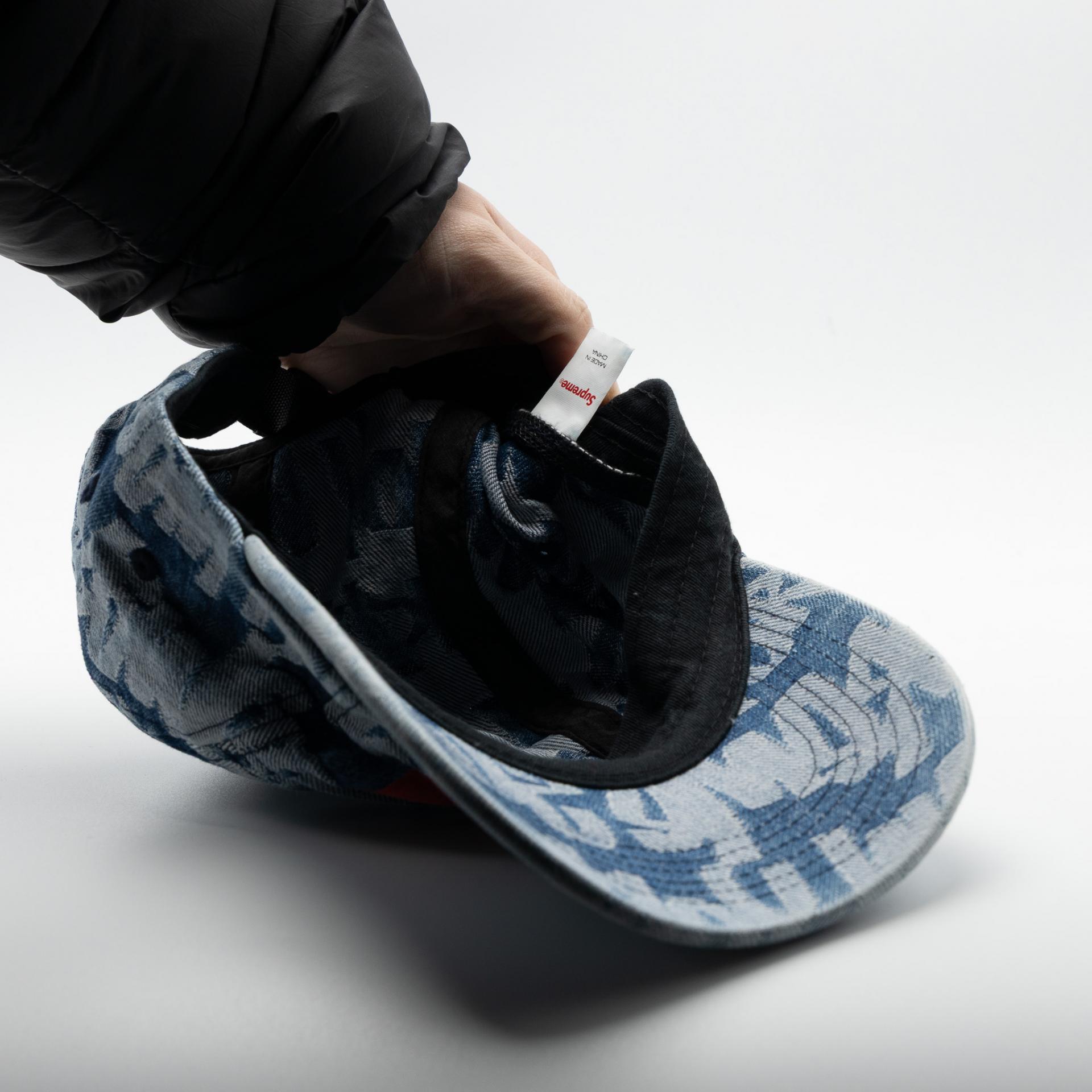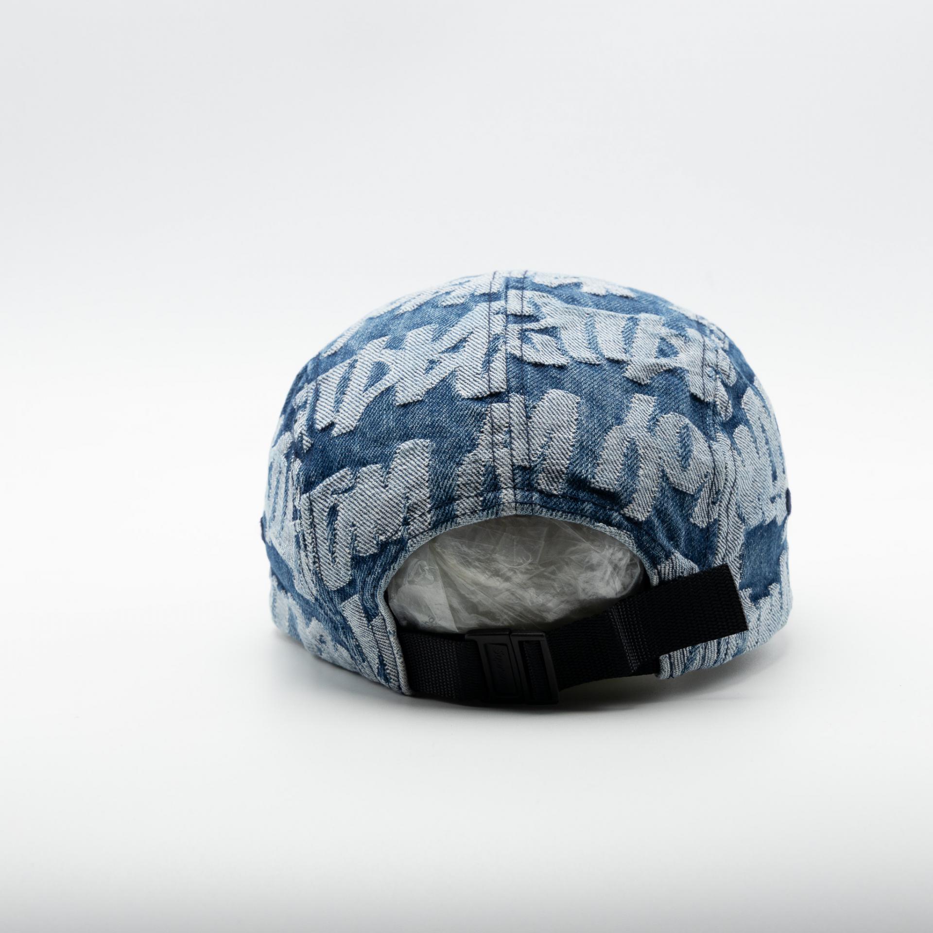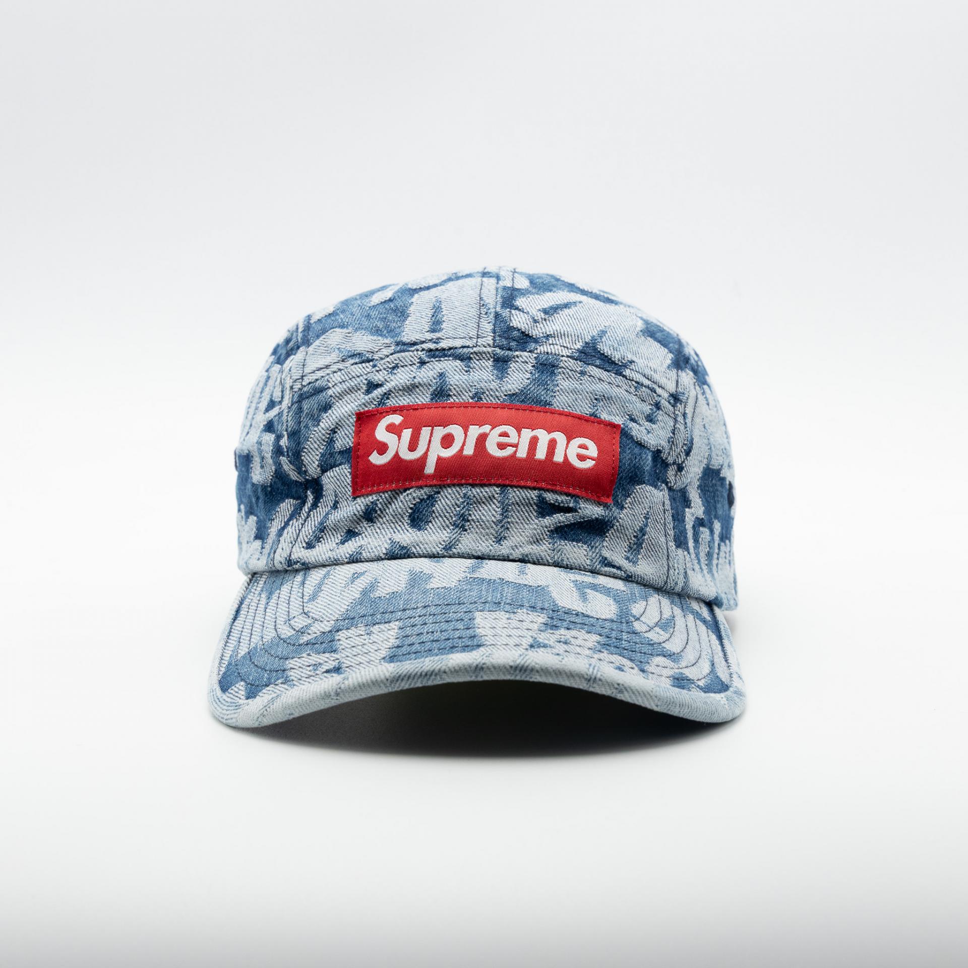 SUPREME FAT TIP JACQUARD DENIM CAMP CAP BLUE 22SS