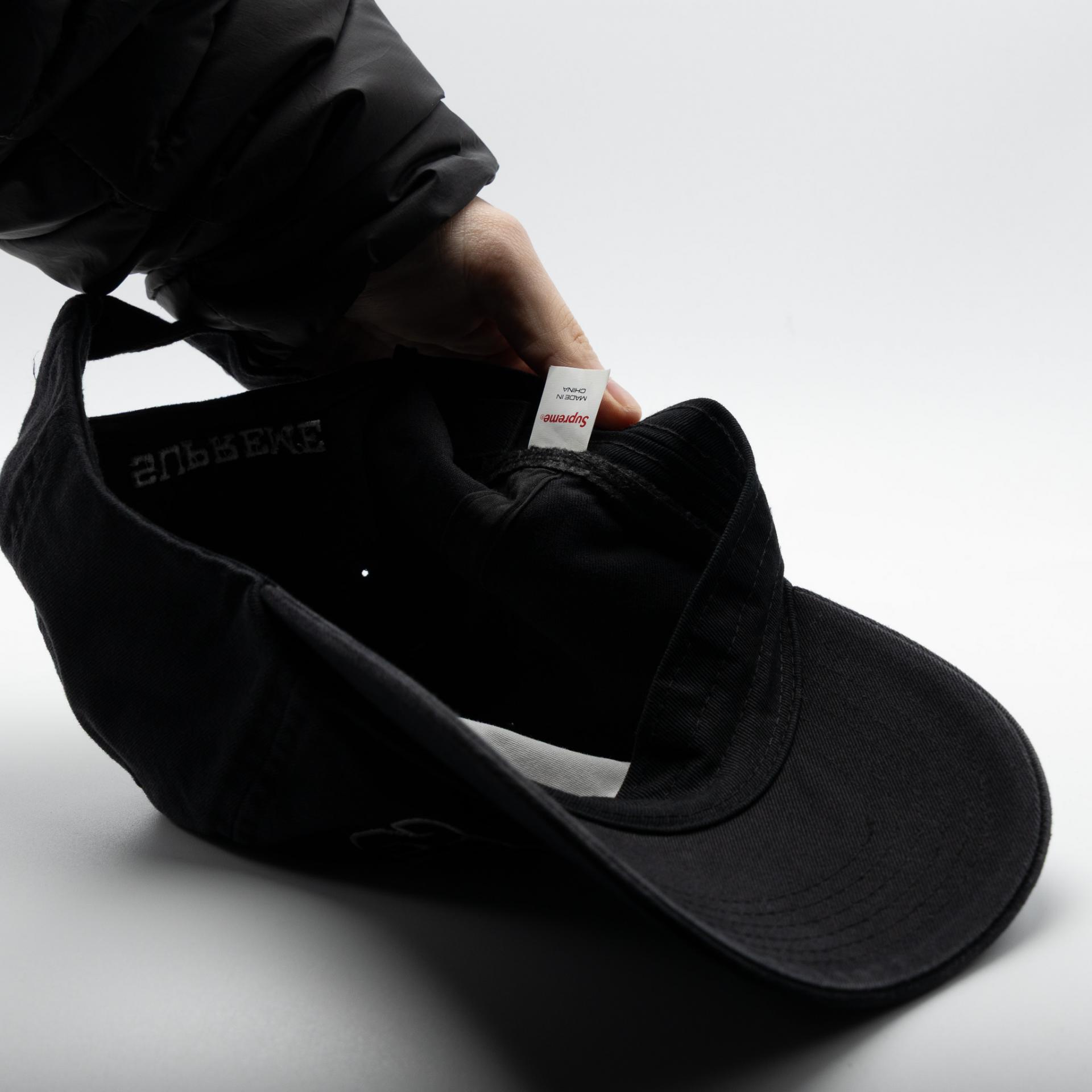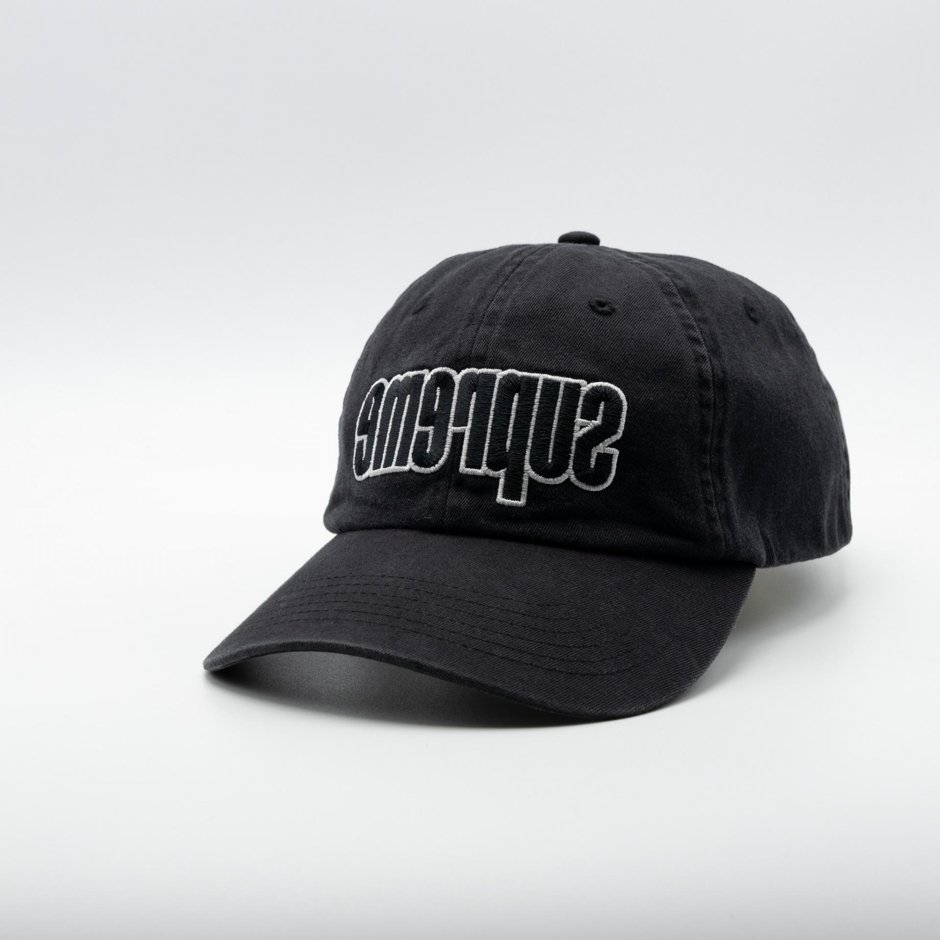 SUPREME REVERSE LOGO 6-PANEL BLACK 21FW